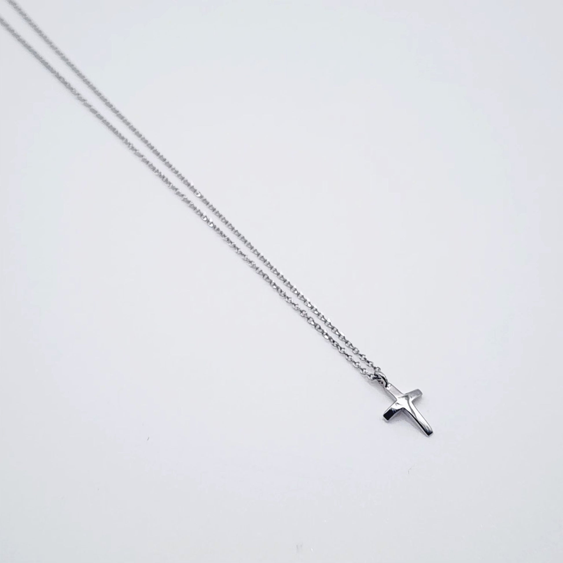 This simple yet elegant 9K white gold necklace features a classic cross pendant.