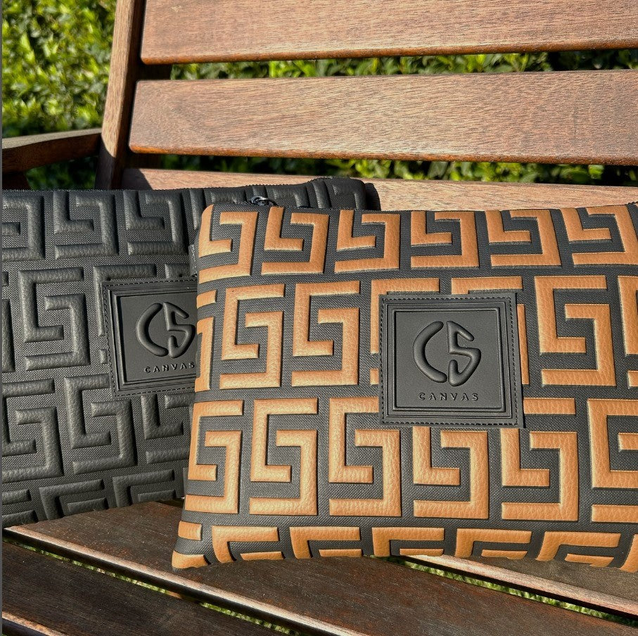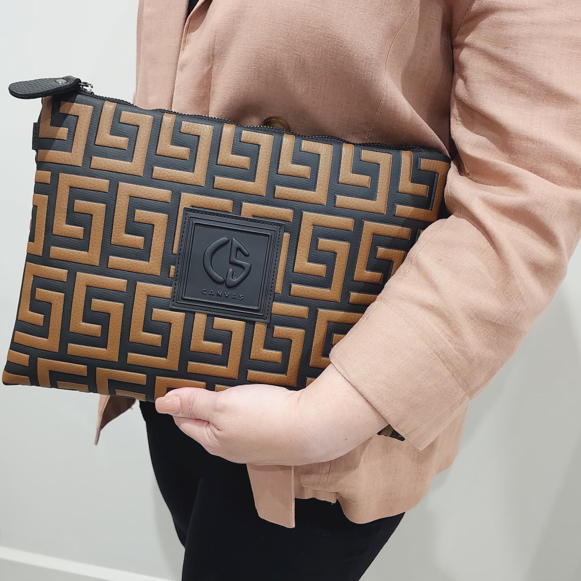 Exclusive to Apoéla Boutique this sleek leather pouch features a striking embossed pattern inspired by ancient Greece.