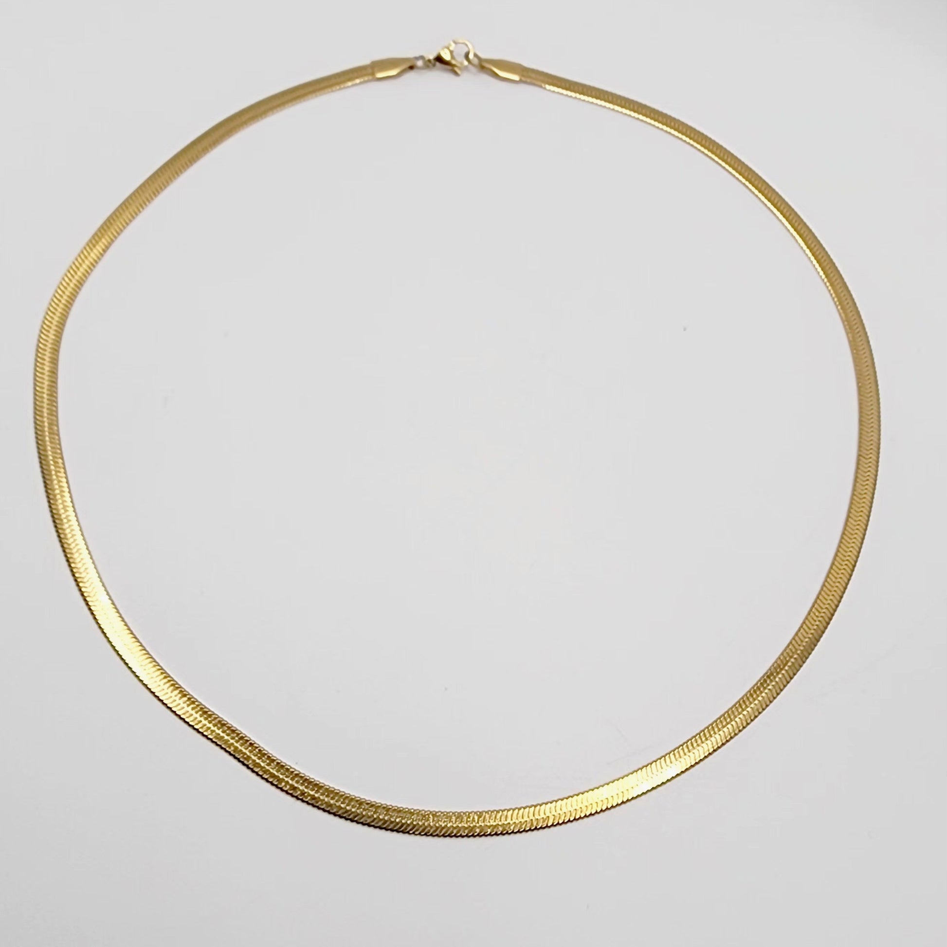 This beautiful sleek gold herringbone necklace by Pathos Jewellery adds a touch of timeless sophistication to any look.