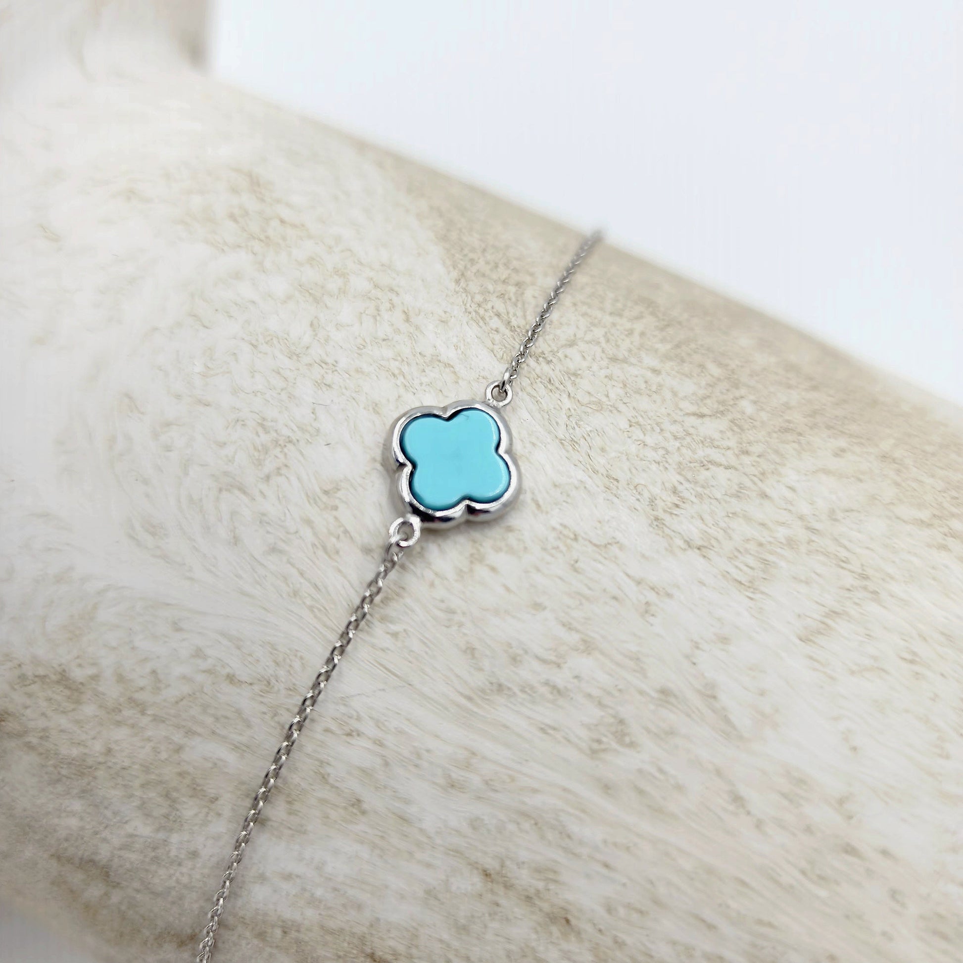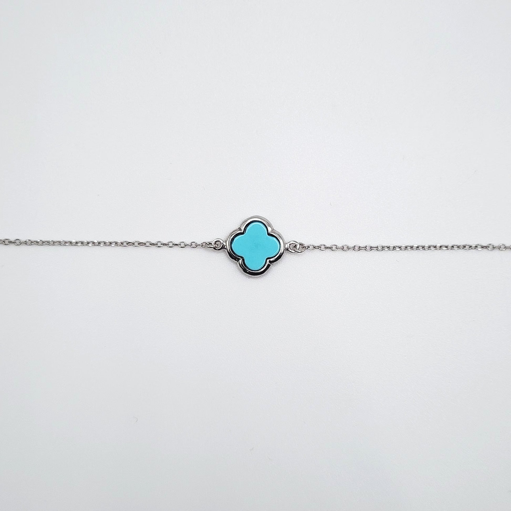 This stunning bracelet features a turquoise clover offering a refined and graceful look.