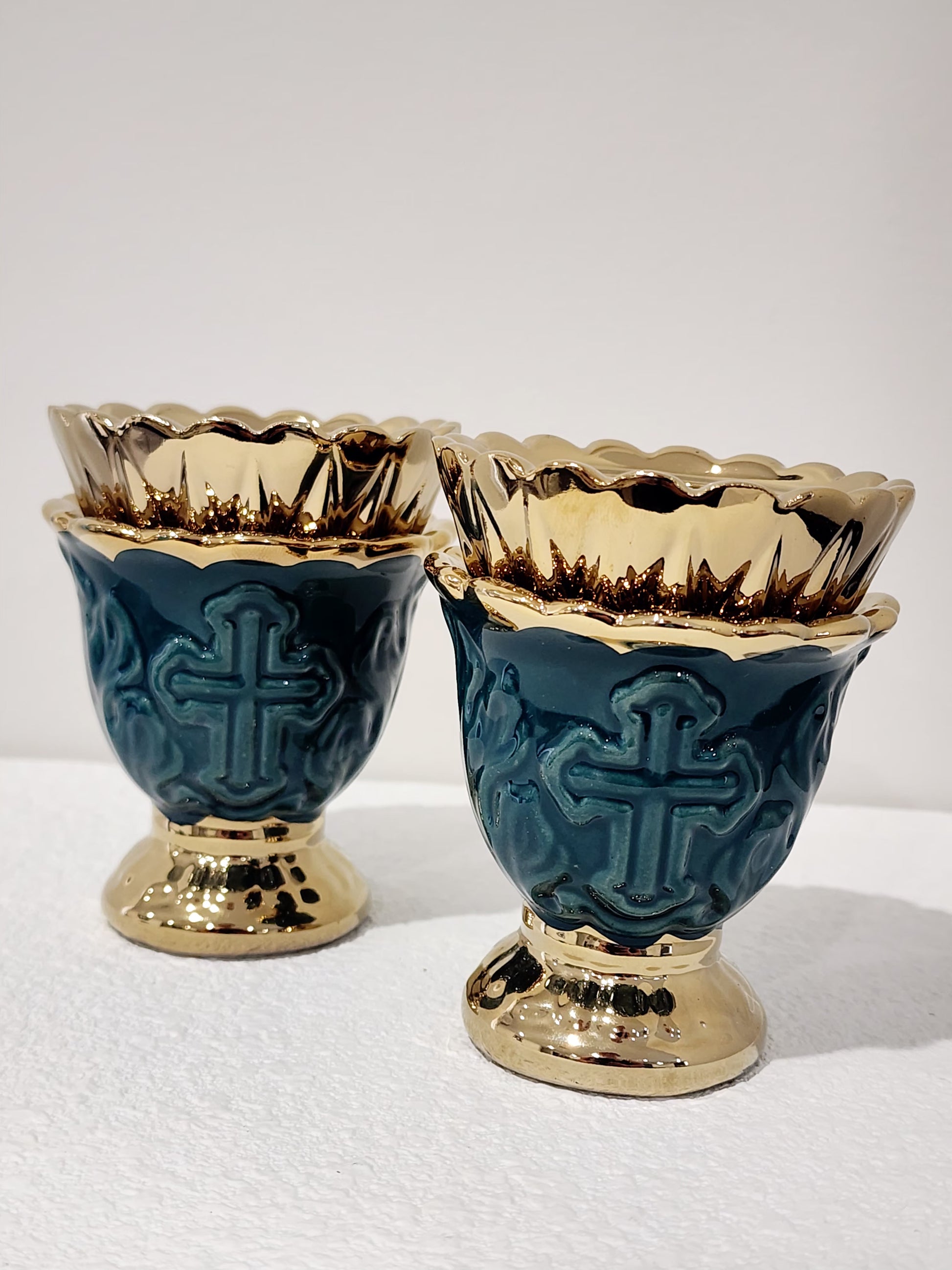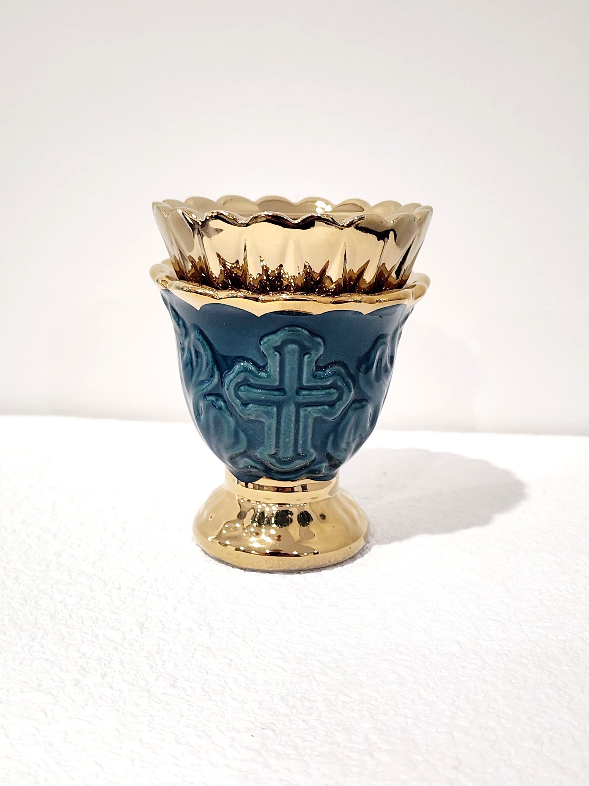 This beautiful dark green kandili featuring a detailed cross highlighted with a glossy gold finish is a graceful addition to any sacred space.