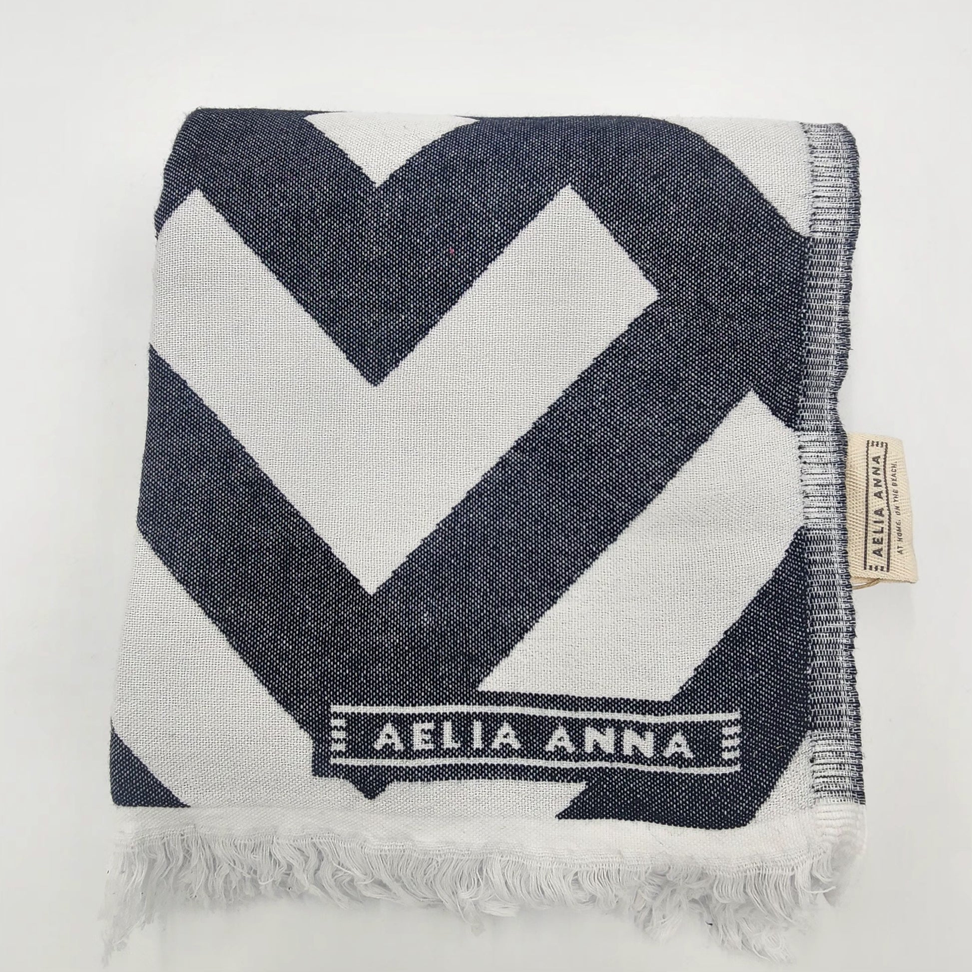 This 100% cotton beach towel features a bold black and white pattern, making it both stylish and functional.