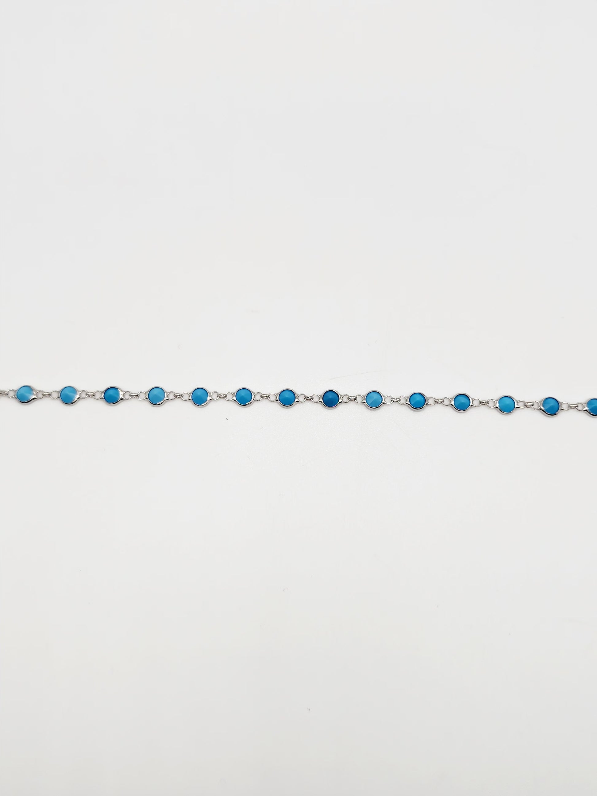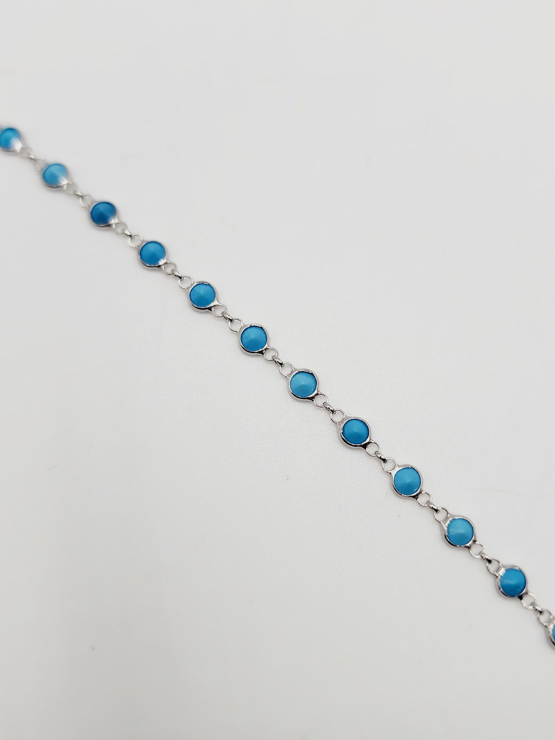 Elevate your style with this stunning silver chain beaded bracelet featuring radiant round turquoise zircons.