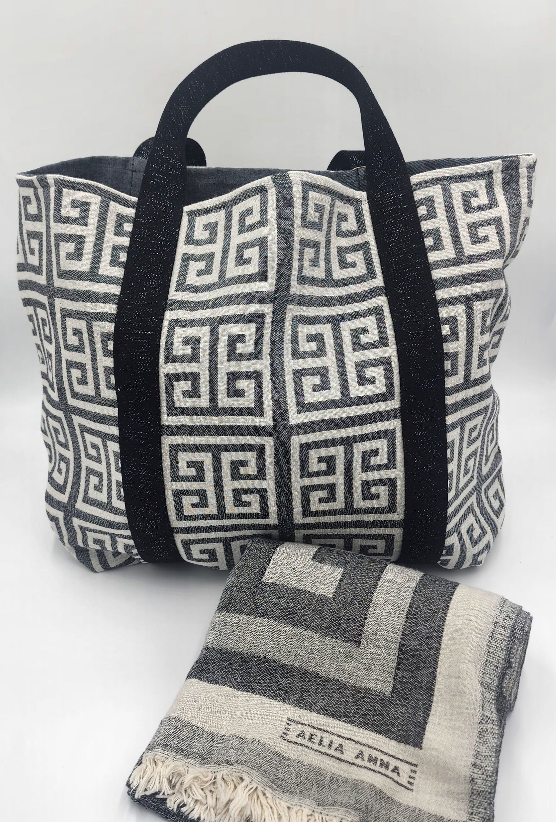 The stunning Greek key bag is crafted from 100% cotton offering a lightweight yet durable design.