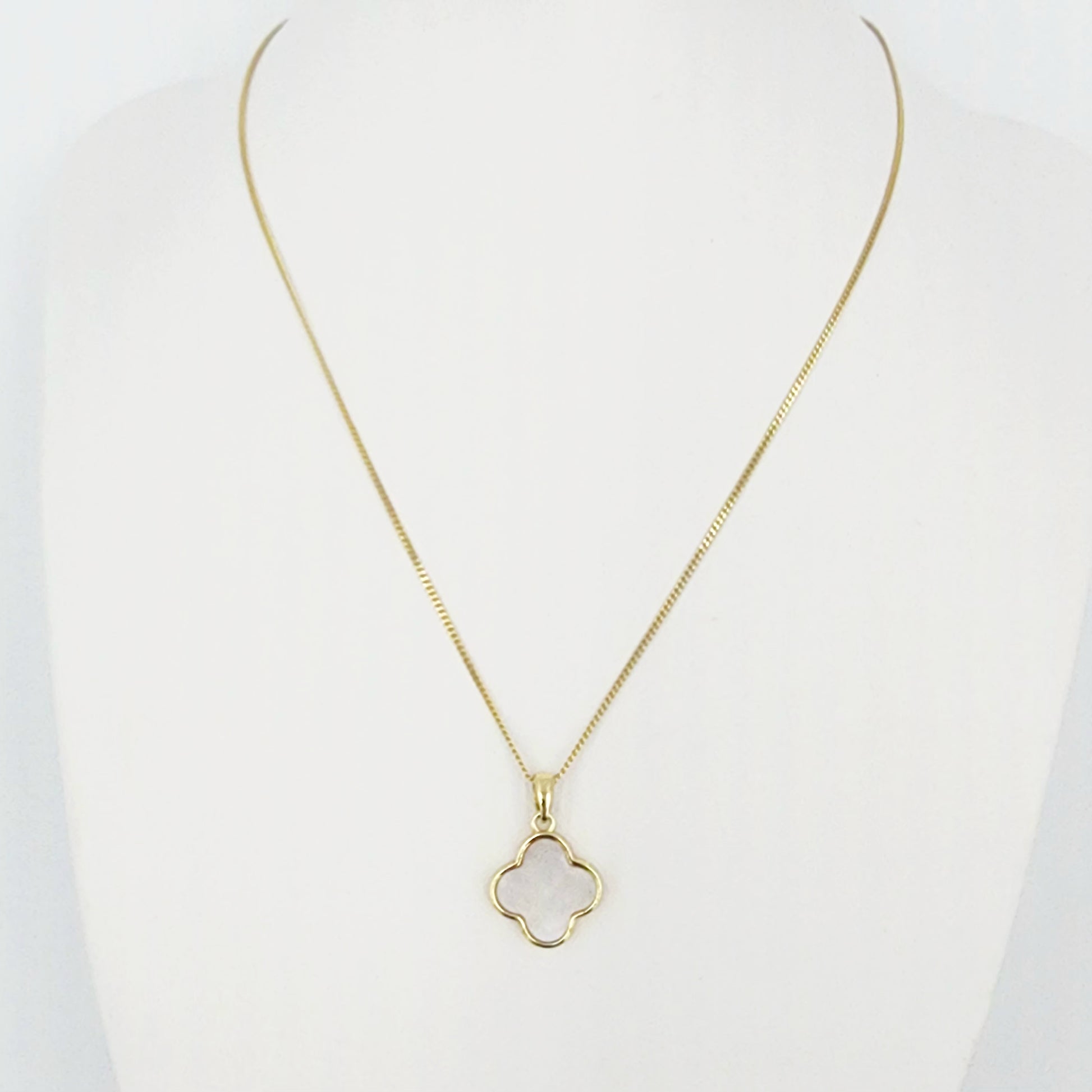 Elegant and refined this necklace showcases a beautifully simple cross-shaped pendant with a luminous mother of pearl accent.