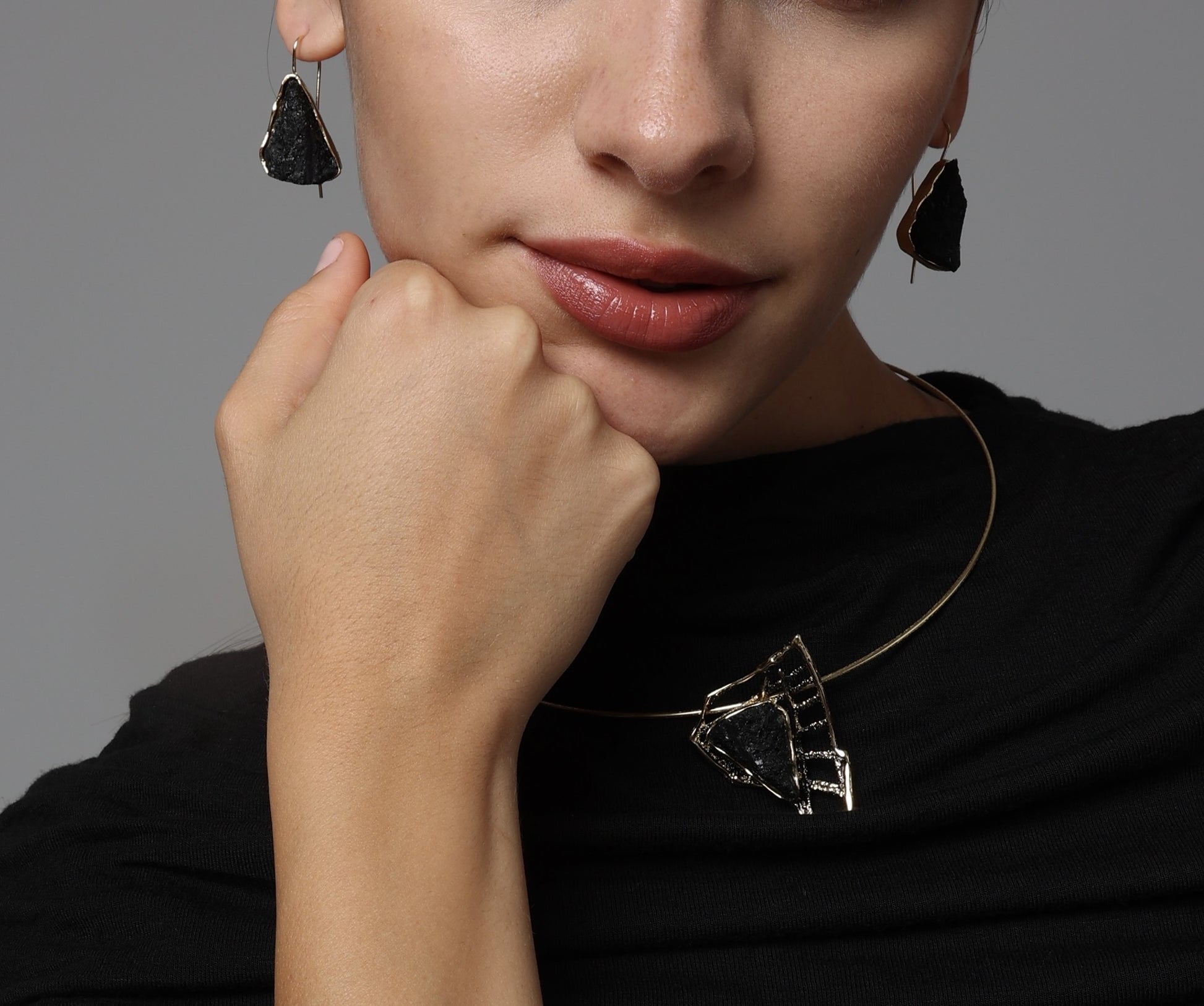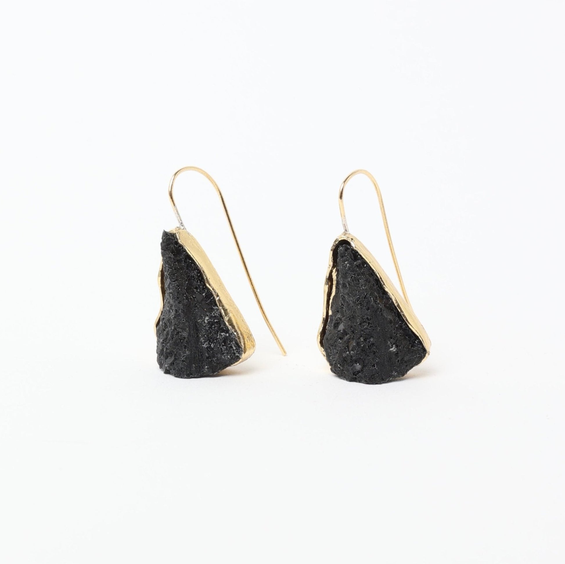The irregular triangular shape gives them a unique artisanal look while the gold lining adds a touch of luxury and sophistication.