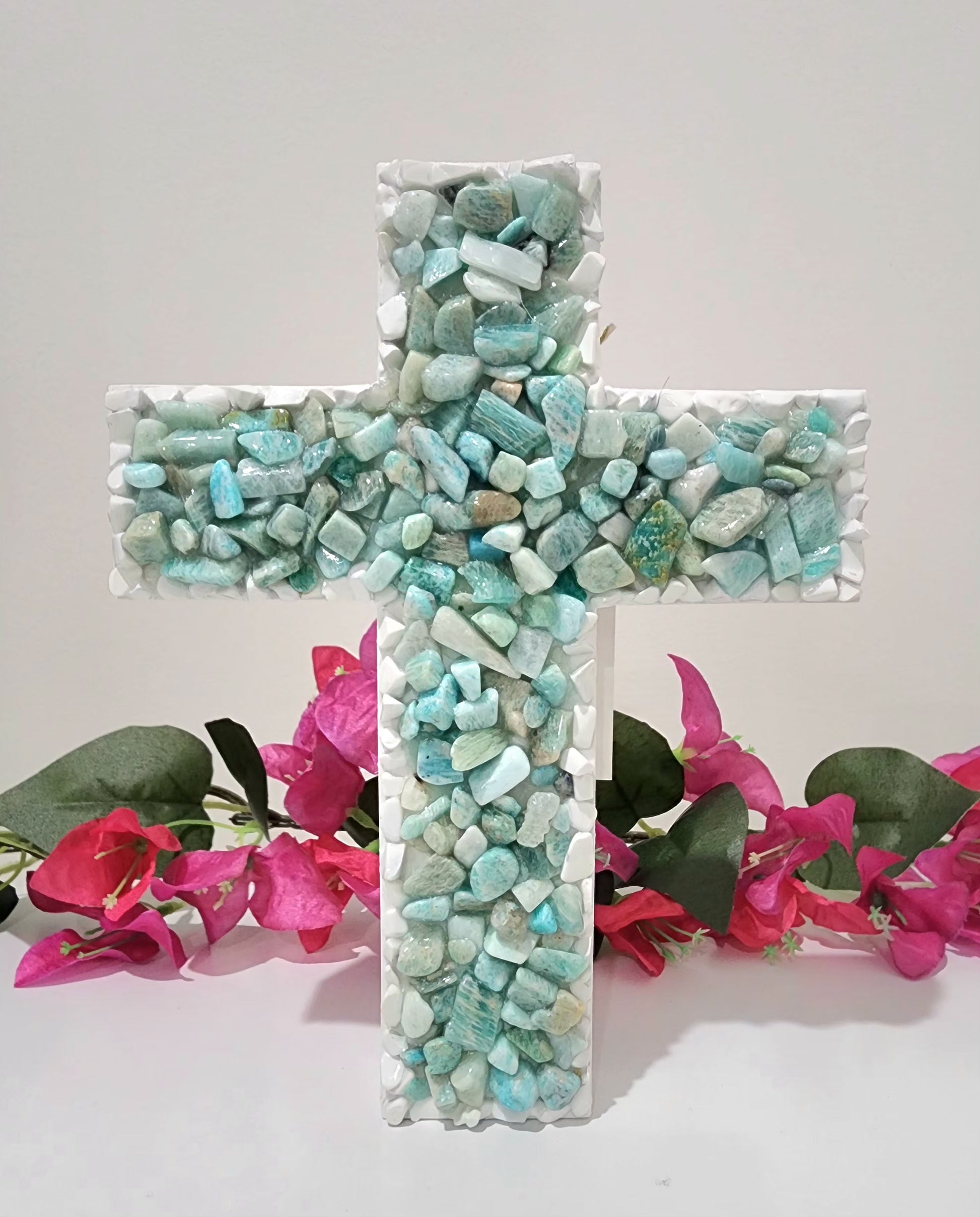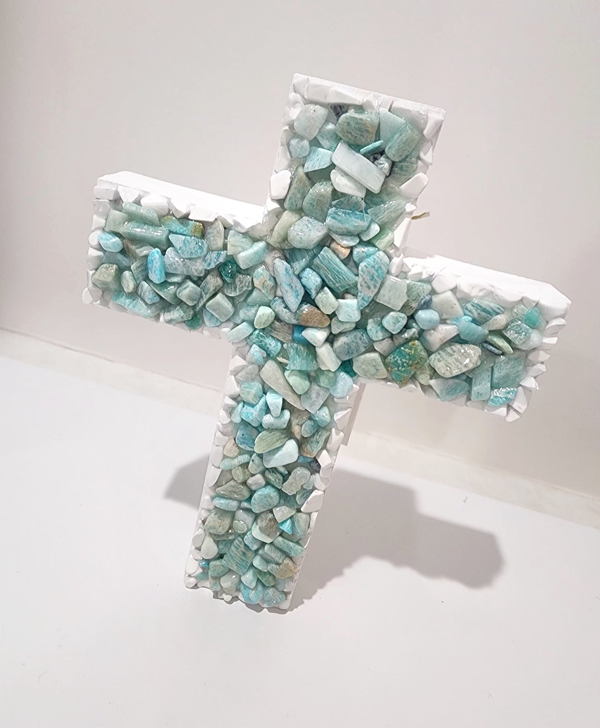 This beautiful handcrafted cross by Anesti Home features Amazonite stones and semi-precious white stones.