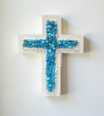 This beautiful handcrafted cross by Anesti Home features turquoise and white stones.