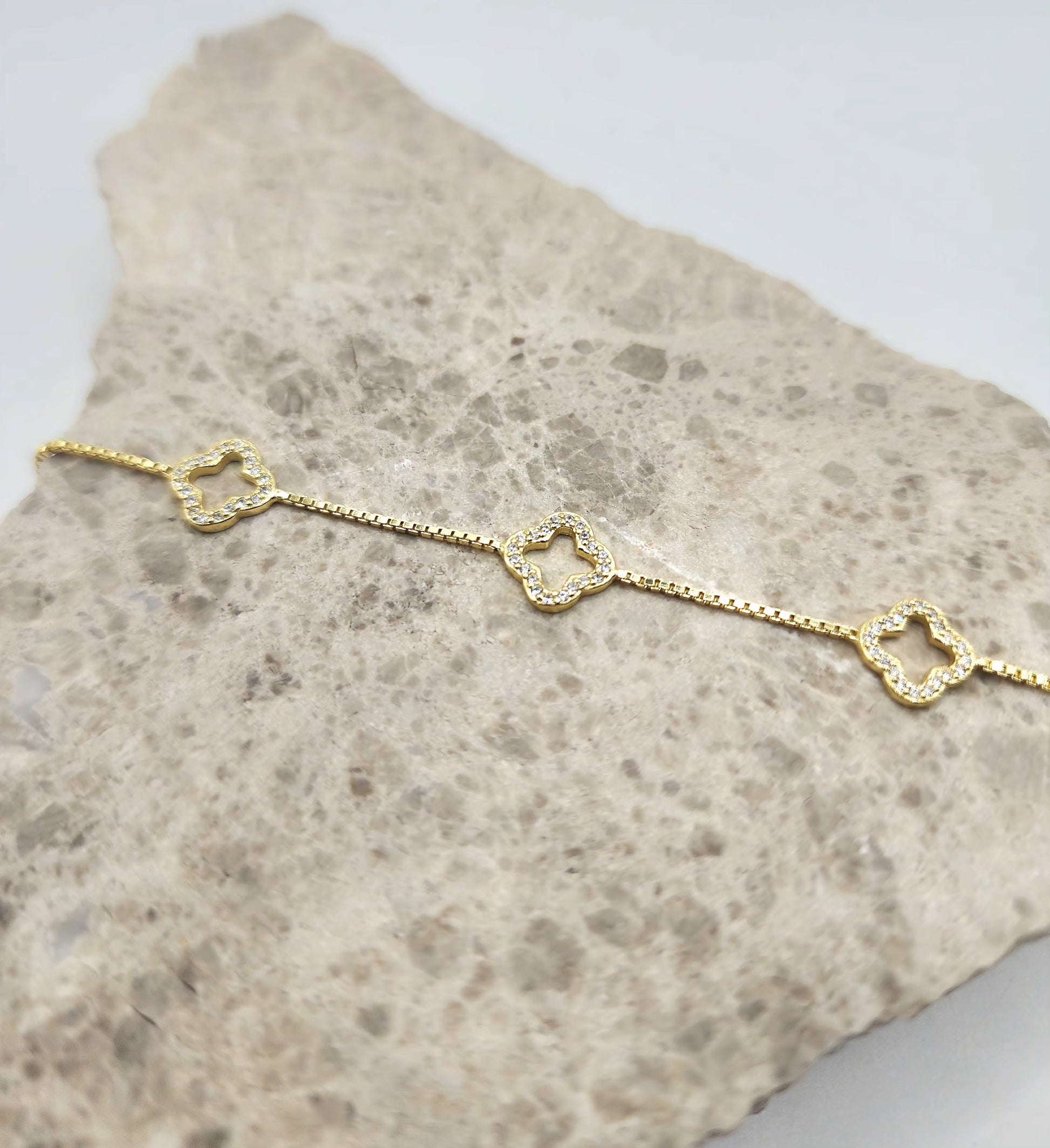 A delicate three-cross bracelet adorned with shimmering crystal stones.