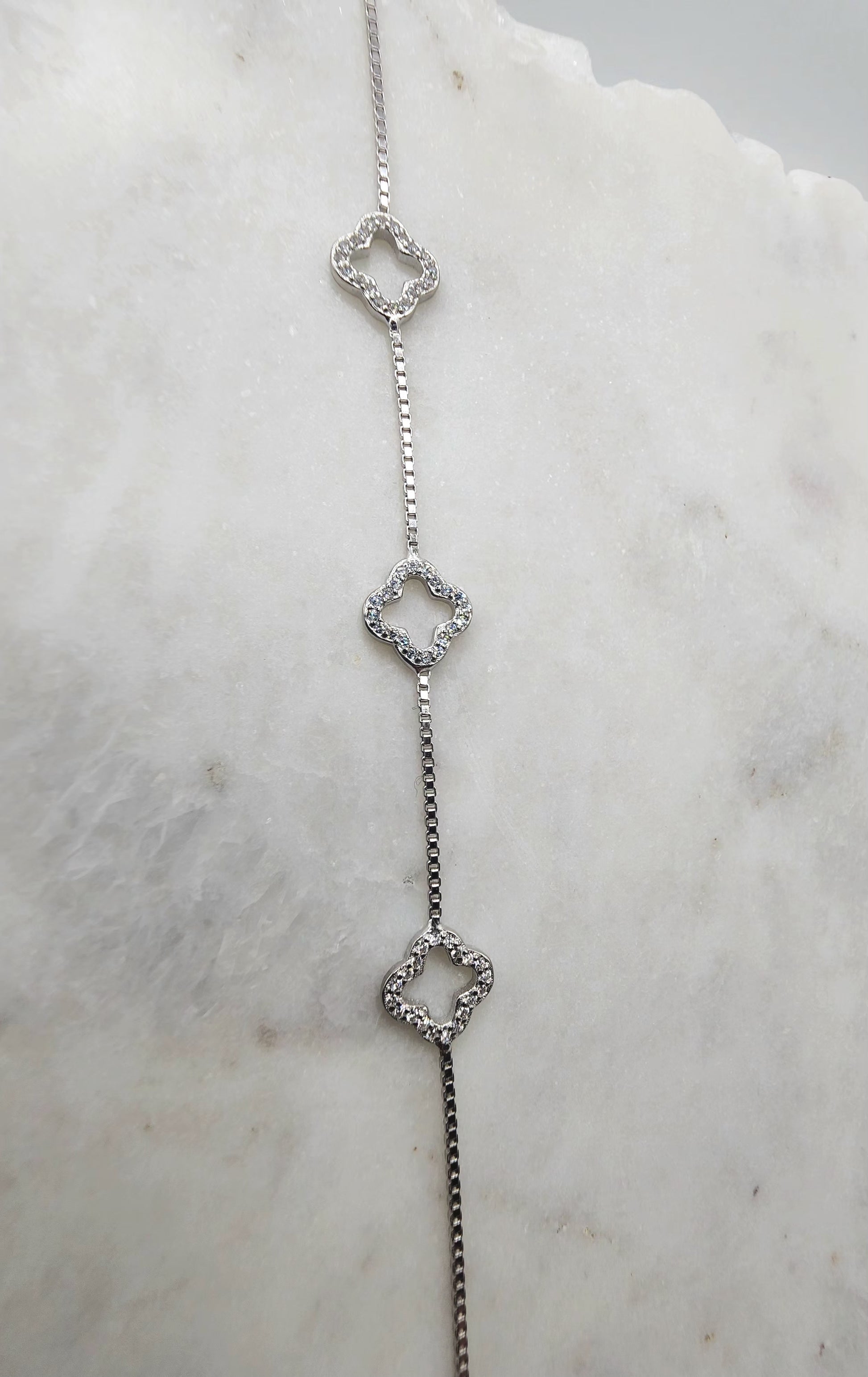 A delicate three-cross bracelet adorned with shimmering crystal stones.