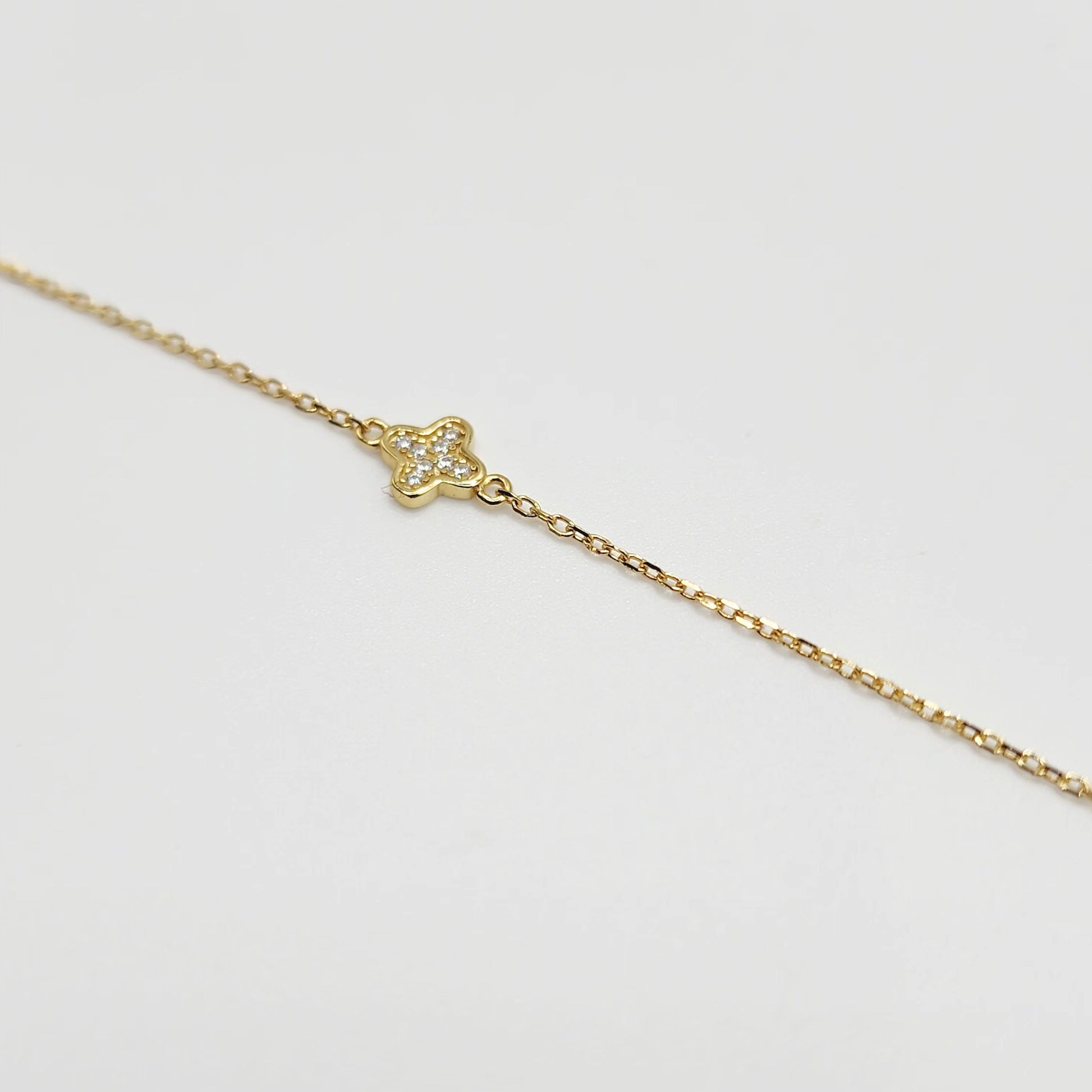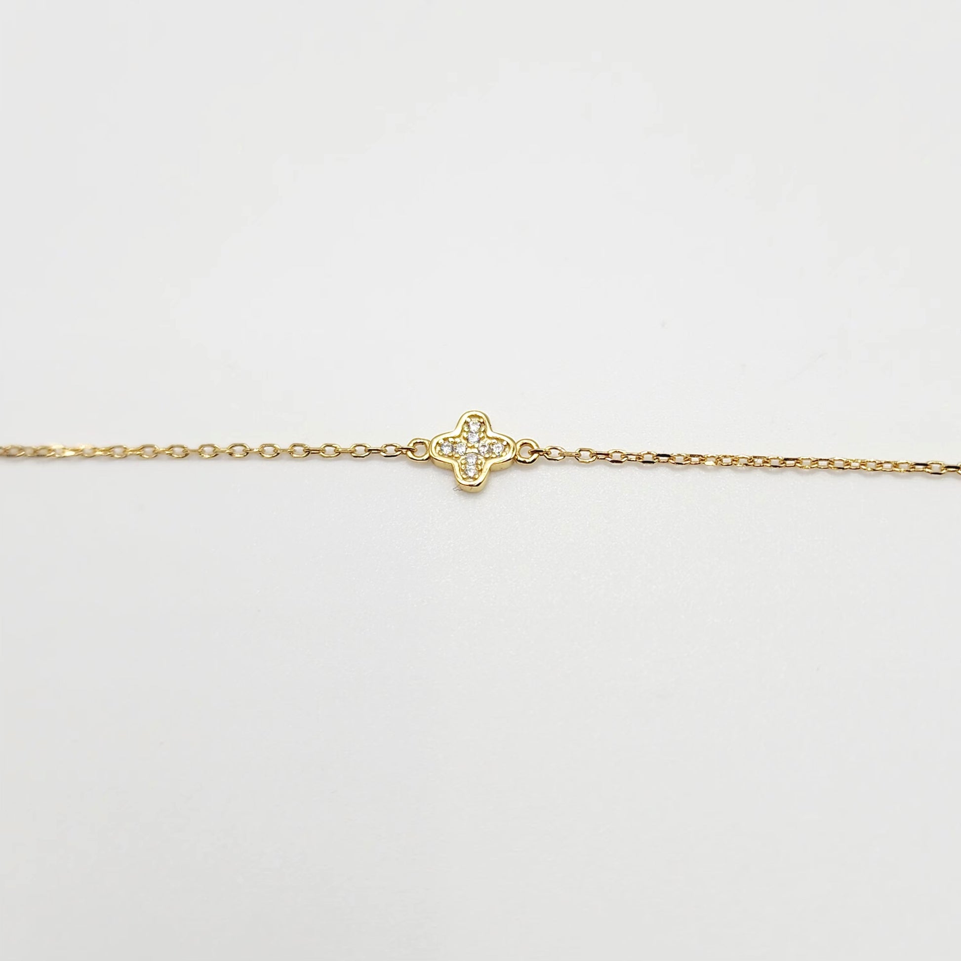 This elegant bracelet features a dainty cross at the center, adorned with a sparkling zircon stones.